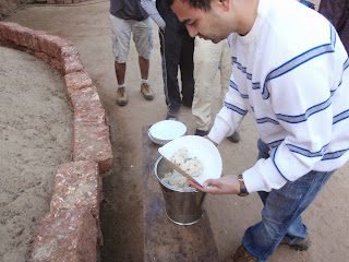 I just washed myself up and saw around 30 people there. Breakfast was being served; it didn’t look good but tasted fine.
